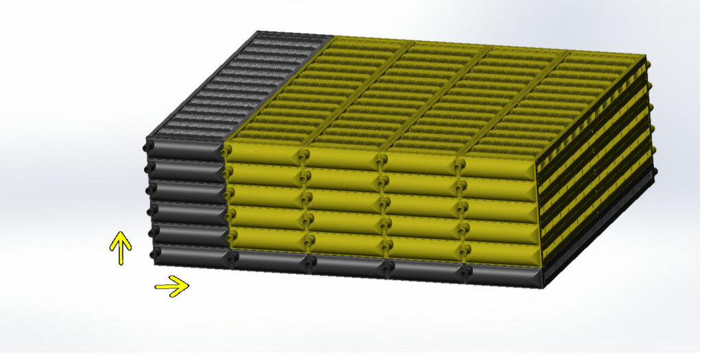 Built-in compression connector allows exchangers to be easily coupled in stacks (both vertical or horizontal).Pre-assembly or easily post-assembled on-site.
